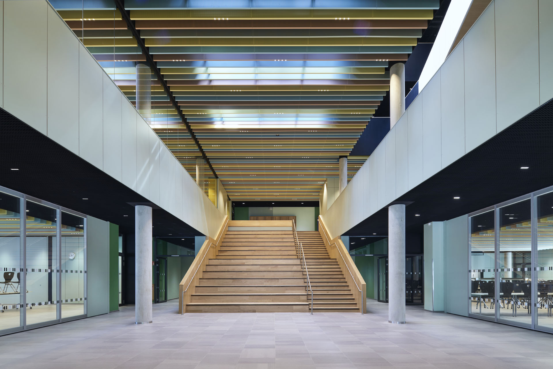 Auf insgesamt rd. 14.000 qm Nutzfläche entstehen helle und freundliche Lern- und Lebensräume – hinter einer dekorativen und nachhaltigen Holzfassade, welche in großen Teilen auch begrünt wird.