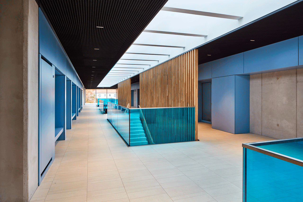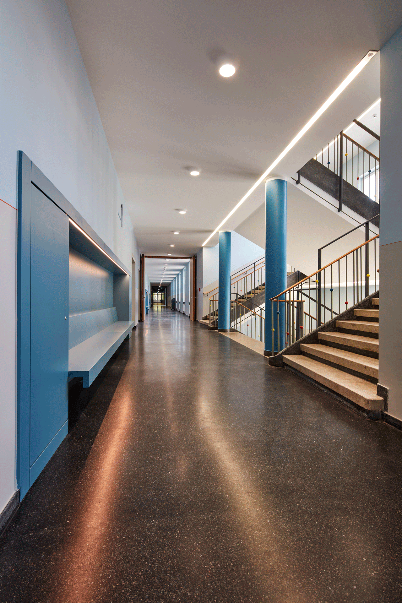 Das vorhandene Schulgebäude dabei nicht nur den aktuellen technischen, energetischen und ökologischen Standards entsprechend zu erneuern, sondern auch an zeitgemäße pädagogische Anforderungen anzupassen, stellte eine besondere Herausforderung der Aufgabe dar. So blieben zum Beispiel die bisherigen Raumaufteilungen weitestgehend erhalten.