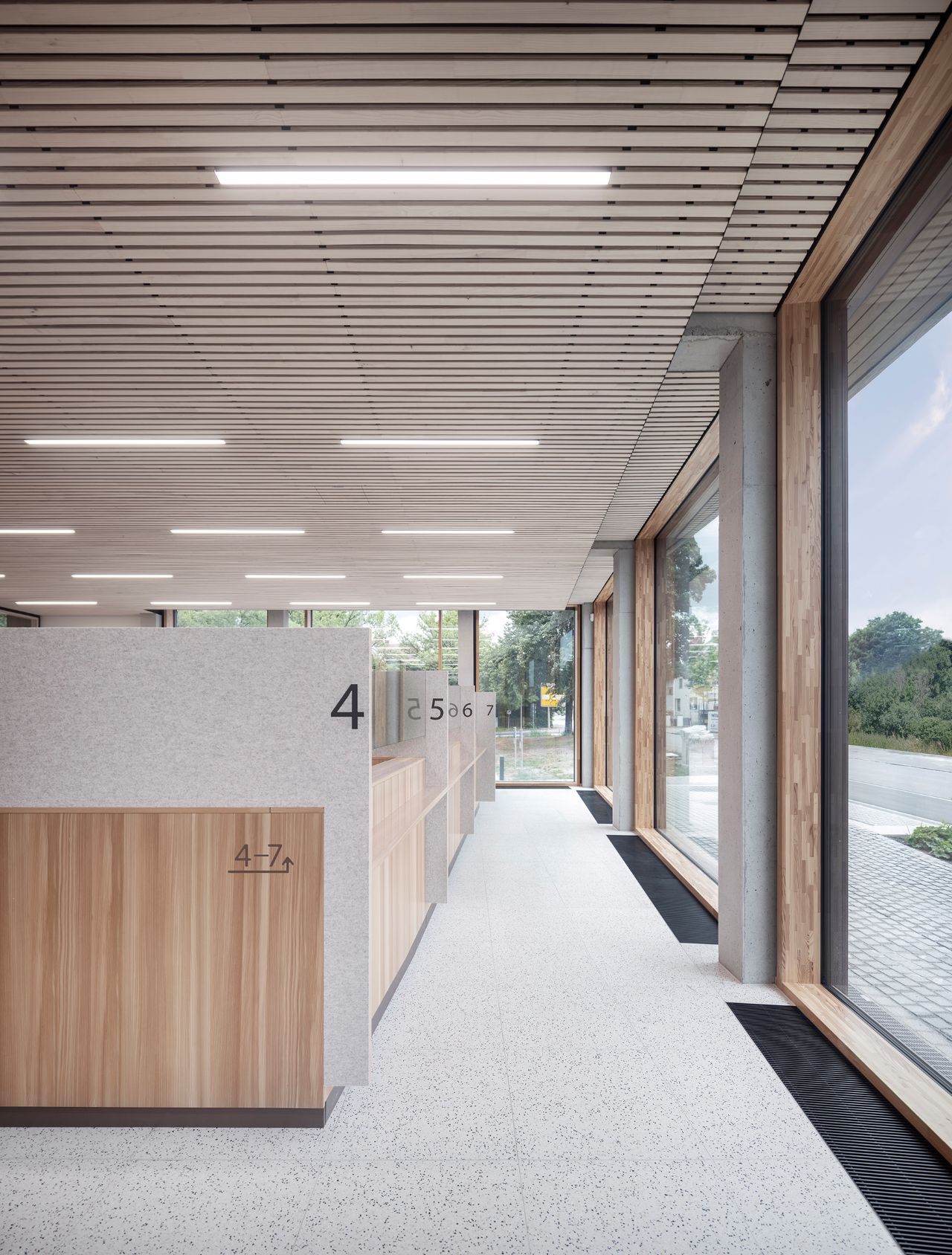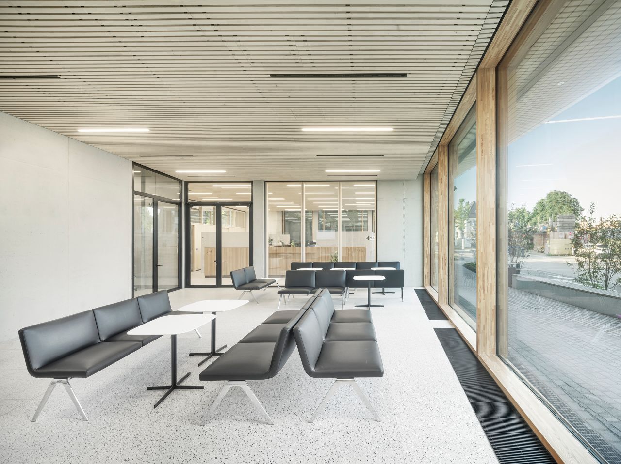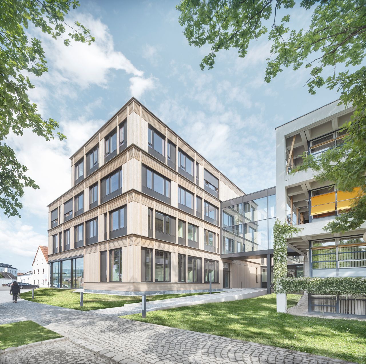 Das Landratsamt Aichach-Friedberg hat an seinem Hauptstandort, Münchener Straße 9 in Aichach, einen Erweiterungsbau realisiert, um seine Nebenstellen an einem zentralen Ort zusammenzuführen. Neben der Büronutzung finden sich dort im Erdgeschoss das Verkehrswesen und die Zulassungsstelle mit großzügigem Wartebereich und Ausstellungsflächen.