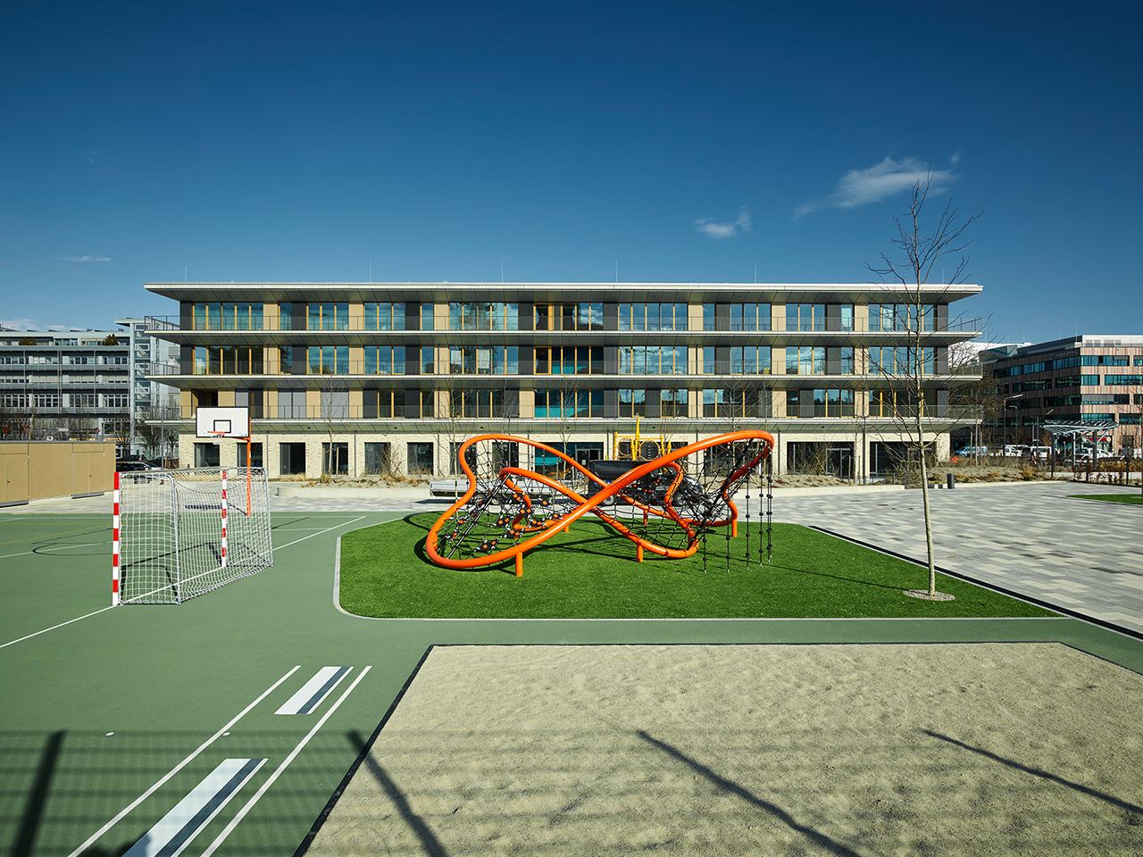Die Bauaufgabe bestand in der Neuplanung einer vierzügigen Grundschule mit integrierter zweifach Sporthalle sowie deren kompakte Einordnung in das neu entstehende Werksviertel rund um den Ostbahnhof. Die Gesamtanlage in unmittelbarer Nachbarschaft zum zukünftigen musikalischen Herzstück Münchens – dem neuen Konzerthaus – wird zum neuen Zentrum des wachsenden Stadtviertels.