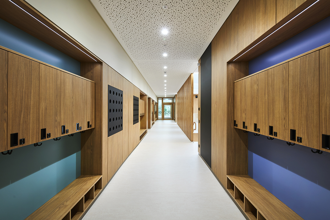 ganz in Holz konstruiert. Die vier Gruppenhäuser und das