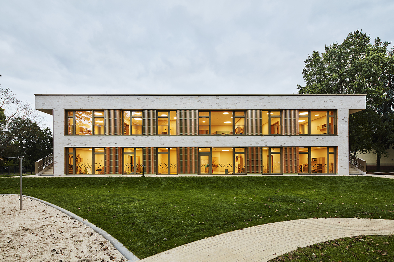 Am Standort wurde eine Kindertagesstätte mit 126 Betreuungsplätzen errichtet, davon 30 Krippenplätze und 96 Plätze für den Kindergarten. Das Gebäude in zweigeschossiger Bauweise ist für die Betreuung von 3 Krippen- und 6 Kindergartengruppen ausgelegt.