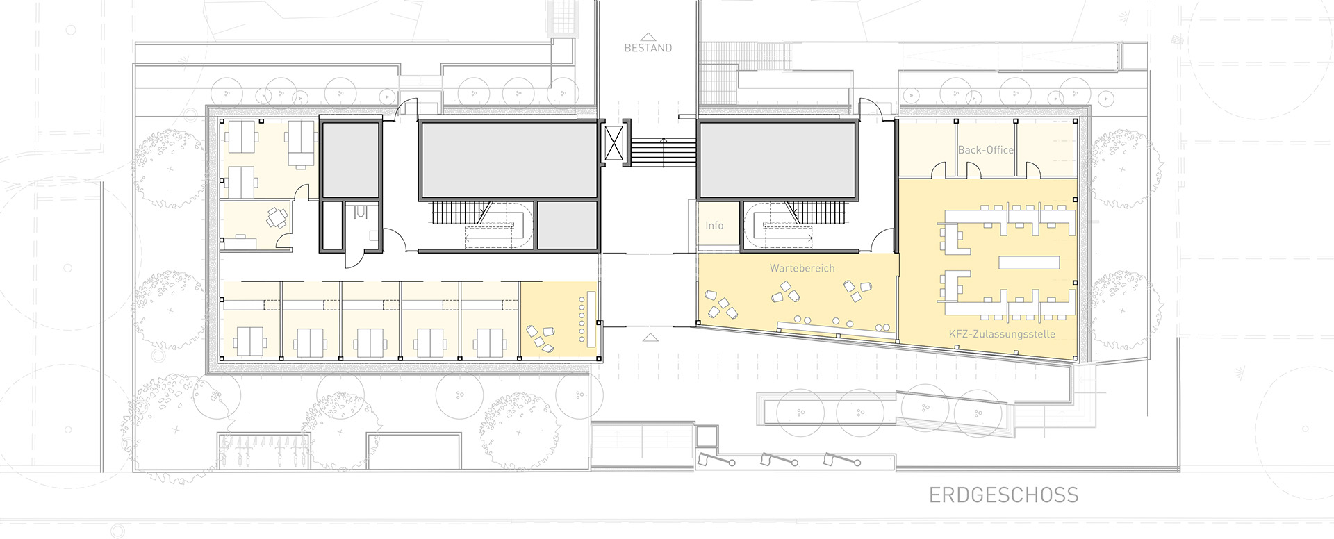 Die Maßnahme soll den erweiterten Bedarf an Raum sichern, moderne Anforderungen an eine zukunftsweisende Bürostruktur für die Verwaltung und eine langfristige Entwicklungsmöglichkeit auf dem Grundstück gewährleisten sowie die Freiflächen neu strukturieren. Der Erweiterungsbau in Holz-Hybridbauweise soll drei Vollgeschosse und ein zurückgesetztes Dachgeschoss erhalten. Neben der Büronutzung finden sich im Erdgeschoss zukünftig das Verkehrswesen und die Zulassungsstelle mit großzügigem Wartebereich und Ausstellungsflächen.