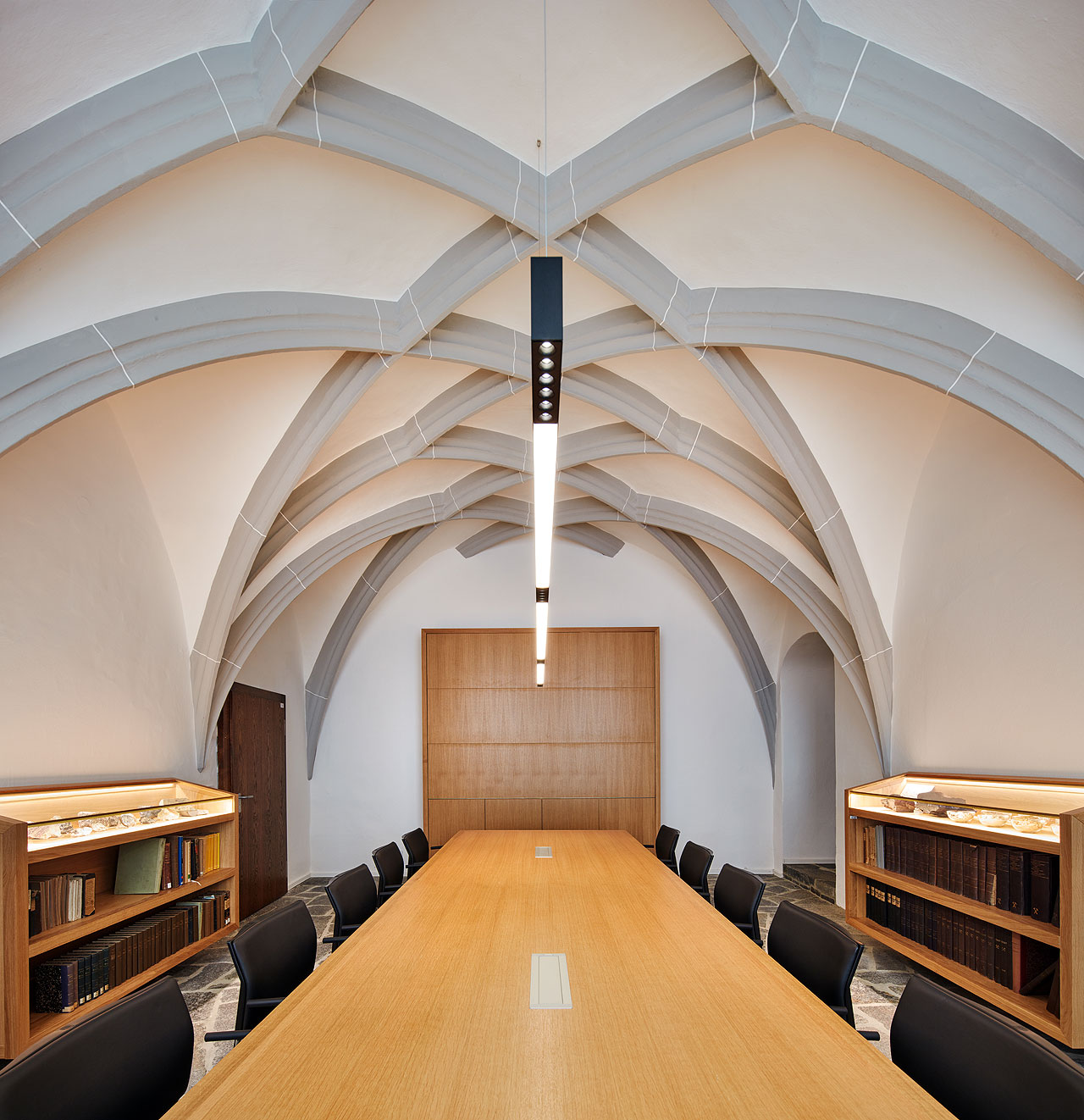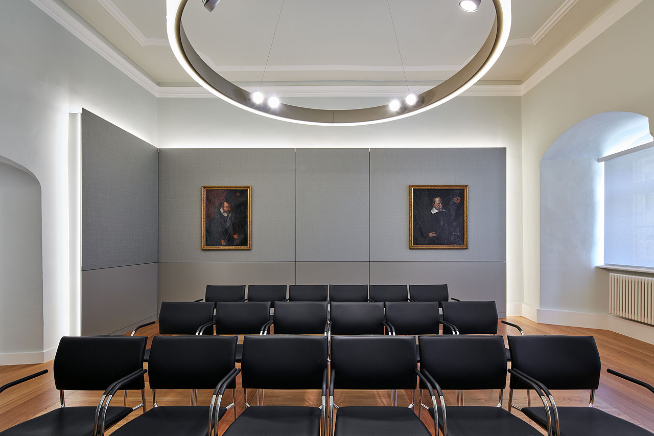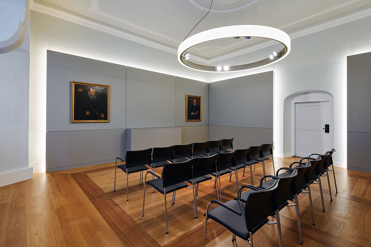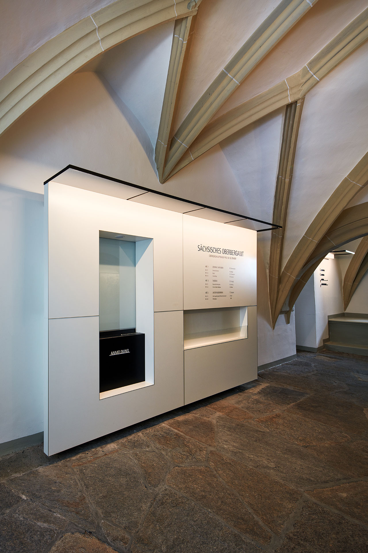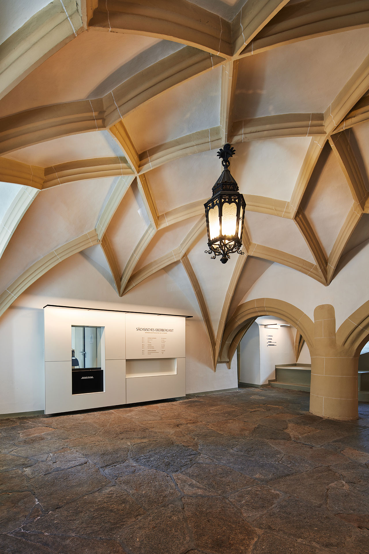 Im Oberbergamt in Freiberg wurde im Zuge der Herstellung einer barrierefreien Erschließung für Gehbehinderte die akustische Verbesserung öffentlicher Bereiche umgesetzt. Eine bessere Raumakustik und Sprachverständlichkeit konnte durch die Errichtung von Wandverkleidungen, mit zum Teil integrierten technischen Komponenten, sowie Einbau von akustisch wirksamen Einbaumöbeln erzielt werden.