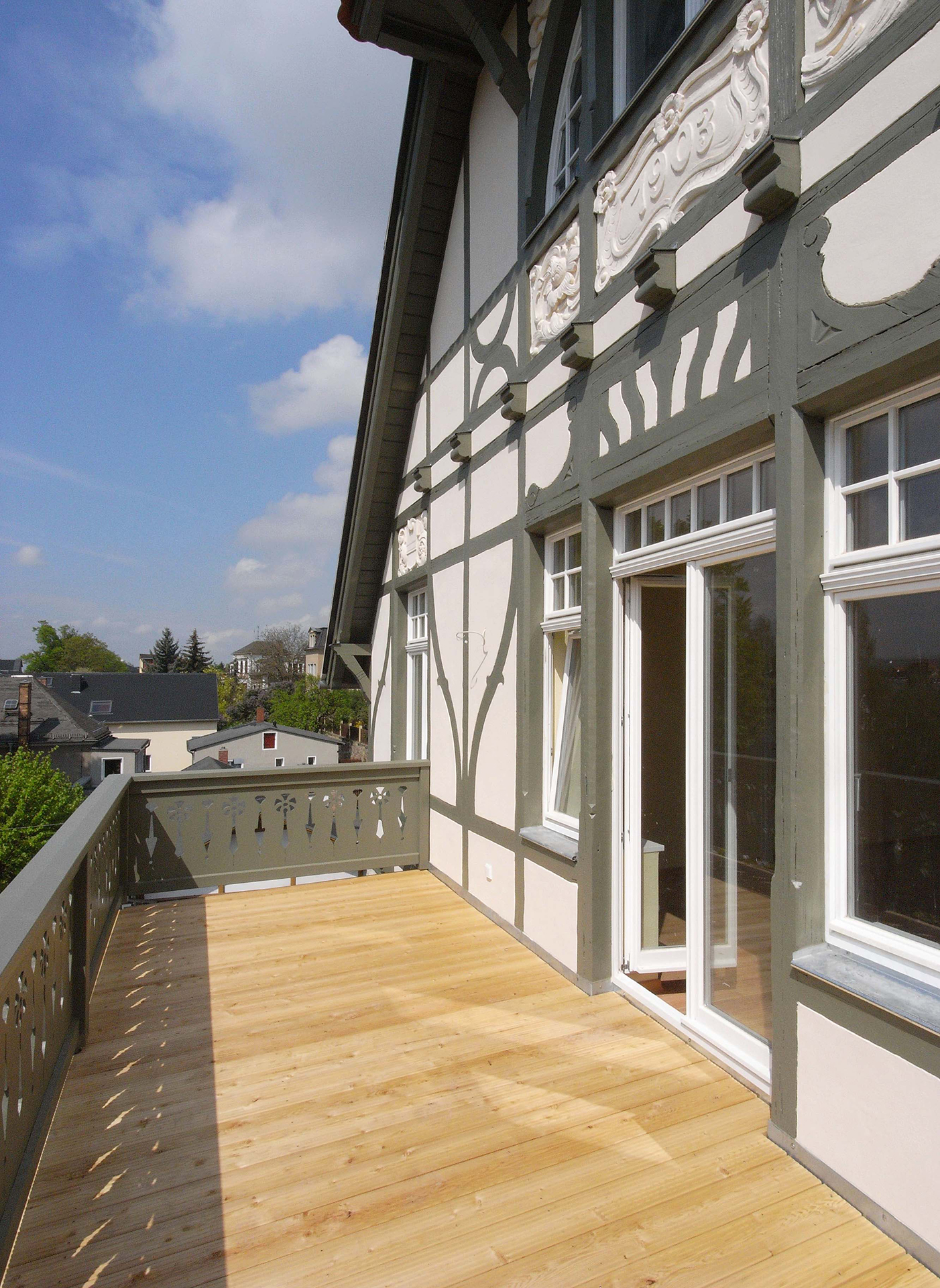 Eine 1903 in Radebeul errichtete Villa wurde grundhaft saniert. Im Gebäude befinden sich nach dem Umbau 4 großzügige Eigentumswohnungen mit offenen Raumstrukturen. Jede Wohnung verfügt über einen separaten Eingangsbereich. Besonderes Augenmerk wurde auf die restauratorischen Leistungen zum Erhalt der denkmalpflegerisch wertvollen Bausubstanz und dessen Details gelegt.